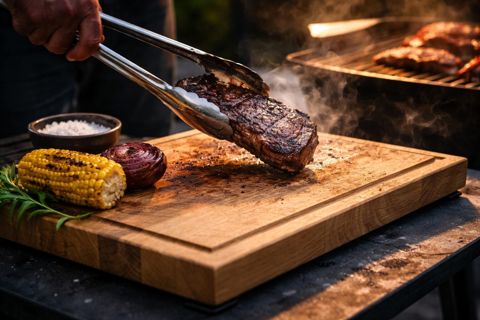 Bei einem BBQ Schneidebrett aus Eiche gehört die Saftrille deshalb zum Standard. Sie macht den Unterschied zwischen einem normalen Brett und einem echten Arbeitsbrett für den Grill.